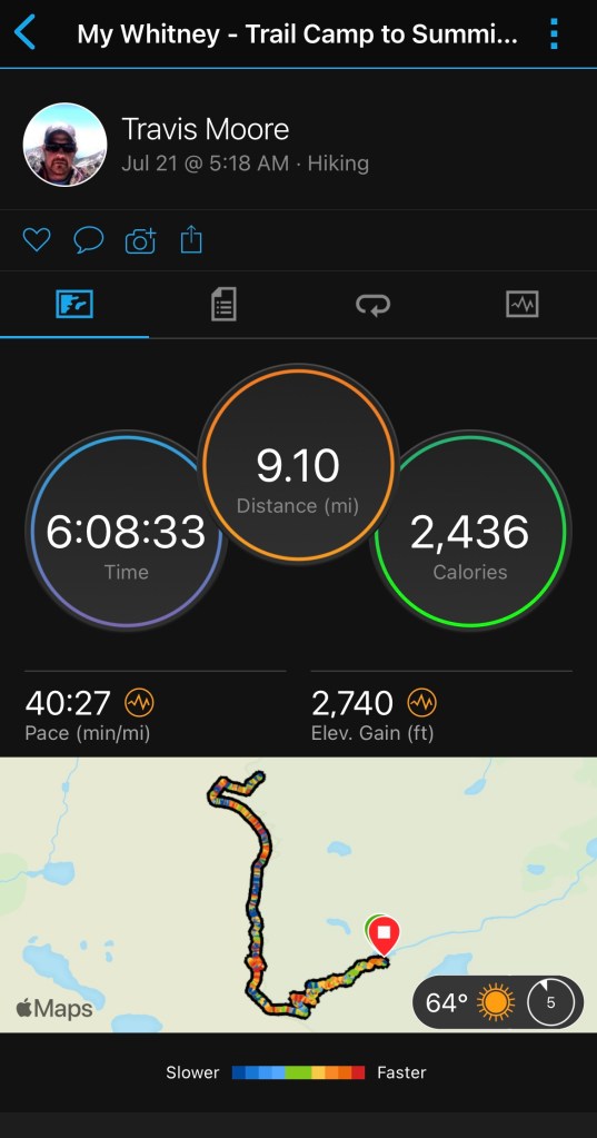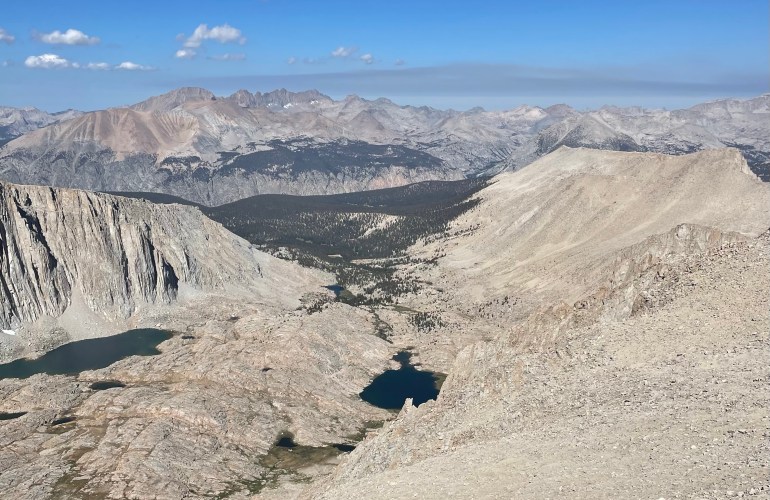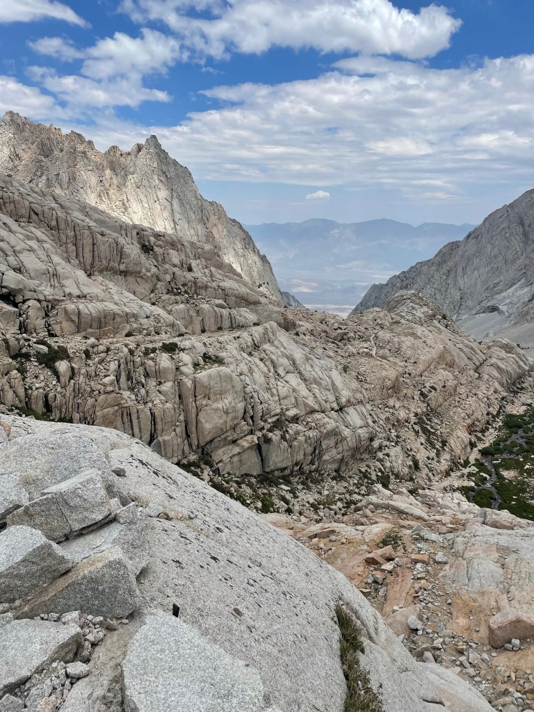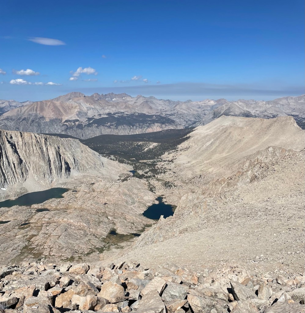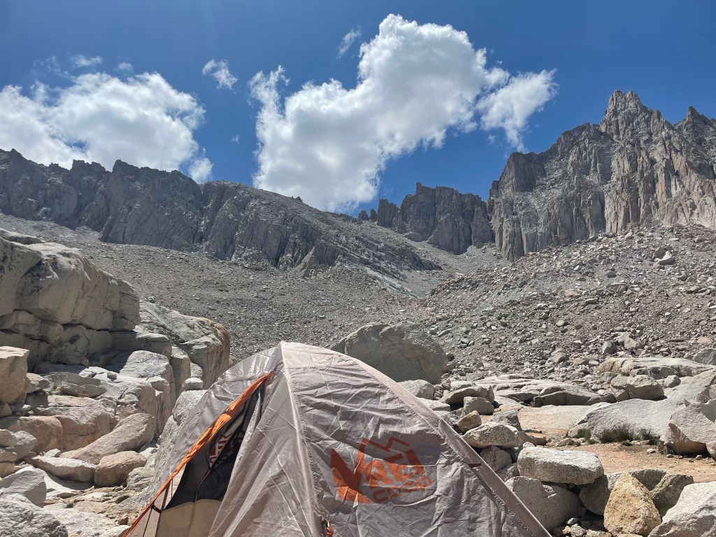 Hauled myself back down the notch with the help of some folks coming up, down climbed the snowfield, skated and slipped down the scree, and cursed a little as I climbed back up to Blue Lakes Pass. A little while later after an 8 hour day I was back to camp.