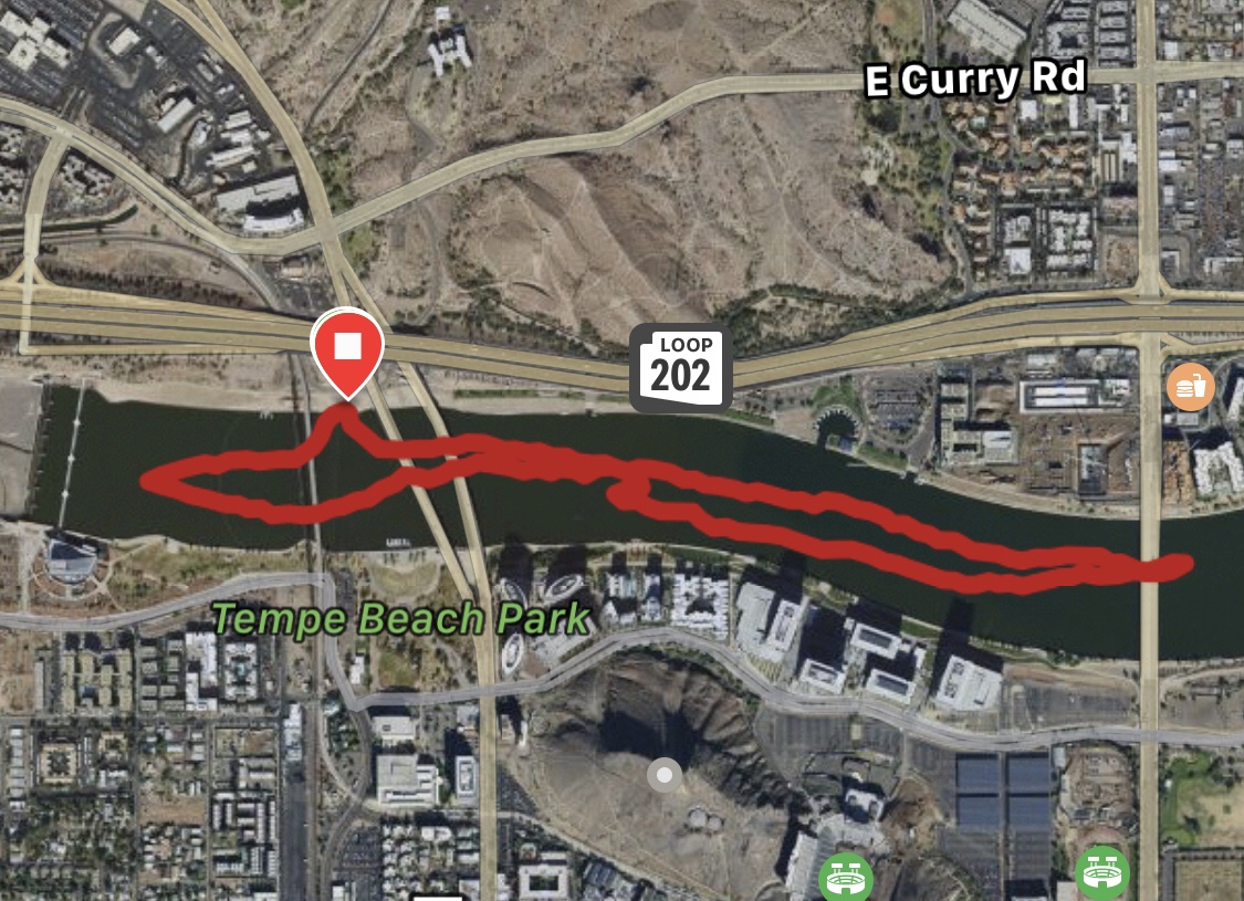 Always in need of an afternoon, post-work summer activity I decided to get a Standup Paddleboard. While the first experience on Tempe Town Lake was more of an exercise in stubbornness, the 2nd time was super fun. The first time I had 20+ mph winds, the next time pretty calm. The Garmin track will show the difference! Fun so far, stories to come…